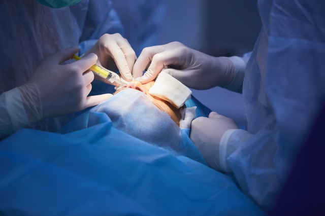 手術室に入室後、ベッドに仰向けになった状態で目の周りを消毒し、再度点眼麻酔を行います。